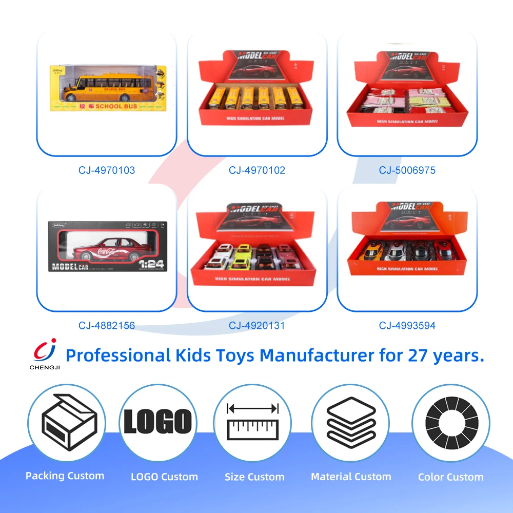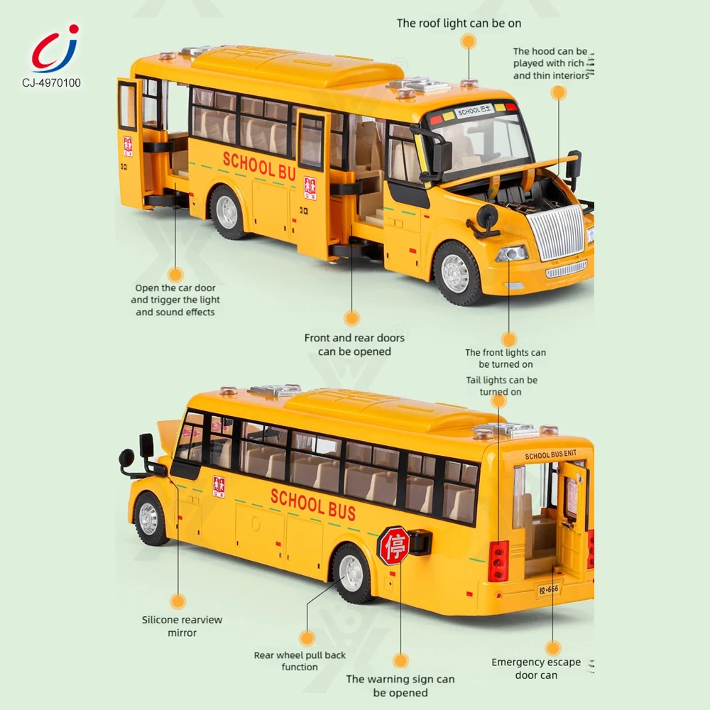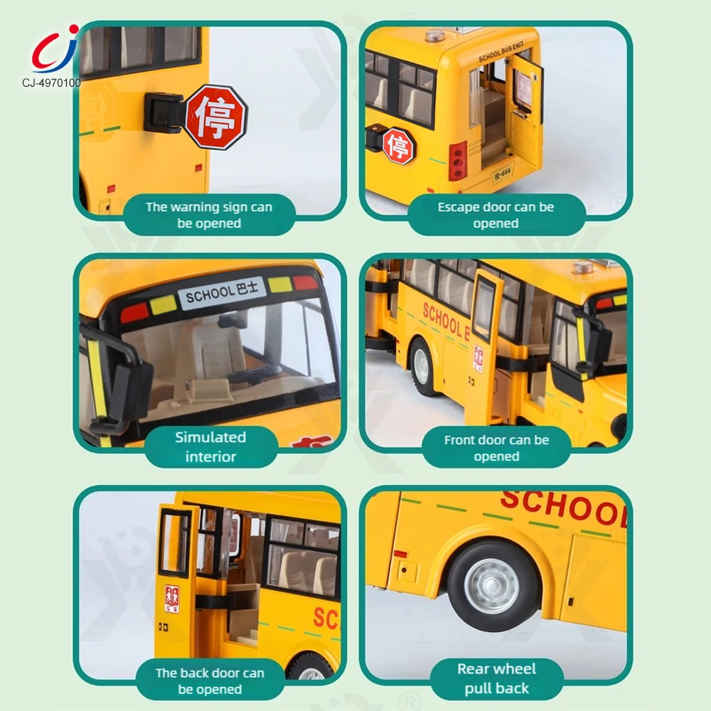 Chengji Diecasting Alloys Car 1:24 Vehicle Model Car Toy Metal Toy Open Door Press Pull Back Toy School Bus with Light and Music